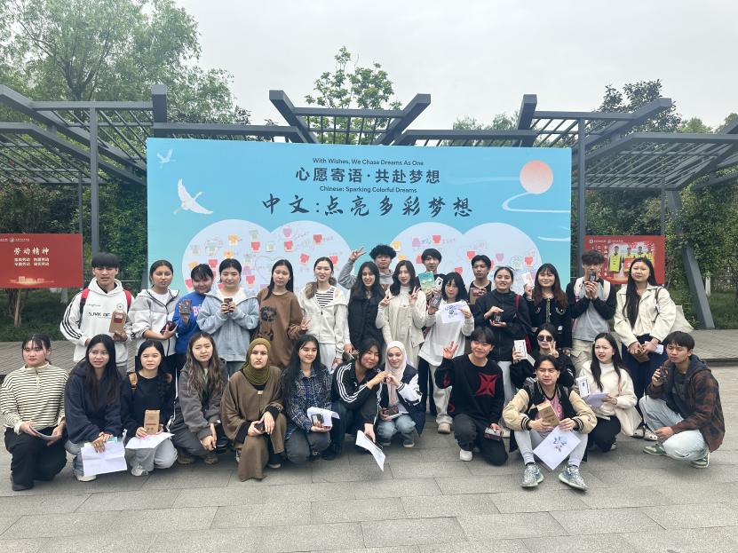 2026年4月20日,在第七个国际中文日到来之际,成都工贸职业技术学院通识教育学院以“中文:点亮多彩梦想”为主题,在鲁班广场举办国际中文日系列活动。来自老挝、柬埔寨、泰国等10余个国家的100余名国际学生与中国师生共同参与,在语言交流中夯实基础,在文化体验中增进认同,共赴一场跨越国界的文化之约。
